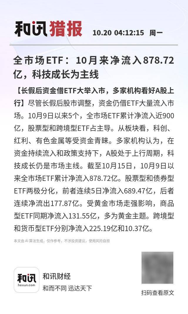 全市场ETF:10月来净流入878.72亿,科技成长为主线