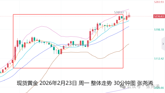 核心市场观点 - 中东地缘政治局势动荡,美国与伊朗军事冲突风险急剧升高,市场避险情绪快速升温,提振了黄金的避险买盘需求,支撑黄金价格持续上涨 [2][6] - 黄金价格在避险买盘支撑下,自上周三止跌后连续四个交易日上涨,并在周一刷新2月份新高 [2][6] 市场走势与价格表现 - 黄金价格在周一突破并站稳5176美元后进一步冲高,盘中刷新日高至5237美元,接近此前设定的5260美元目标位 [1][5] - 具体走势为:上周五欧盘自5122美元企稳反弹至5165美元遇阻,美盘自5141美元企稳后震荡上涨至5205美元,随后回落5175美元企稳继续冲高至5218美元,最终收盘前突破至5237美元 [1][5] 地缘政治背景 - 美国与伊朗已进行两轮间接谈判,目前陷入僵局,双方诉求差距巨大 [2][6] - 美国要求伊朗完全放弃铀浓缩、限制弹道导弹项目及停止地区代理人支持,而伊朗重申不寻求核武器但坚持和平利用核能的权利,并认为导弹能力关乎国家安全不容谈判 [2][6] - 美伊外交谈判进展缓慢,双方军事部署持续升级,导致冲突风险急剧升高,下一轮谈判定于2月26日在日内瓦举行 [2][6] 技术分析 - 日线图显示,黄金自上周三探底回升后连续上涨,短期表现强势 [3][7] - 关键技术指标方面,5日均线与MACD指标形成金叉,KDJ与RSI指标也呈金叉向上,短期技术面显示黄金有机会进一步冲高 [3][7] - 关键支撑位可关注5200美元整数关口、5176美元以及5120美元 [3][7] - 关键压力位可关注周线布林带上轨5280美元、5300美元整数关口,若进一步冲高则关注日线布林带上轨5380美元 [3][7]