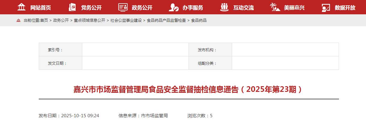 浙江省嘉兴市市场监督管理局食品安全监督抽检信息通告(2025年第23期)