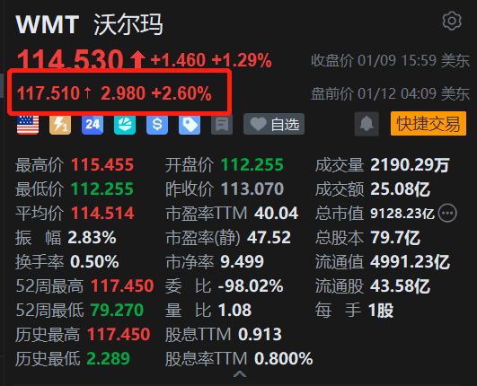 美股异动丨利好叠加,沃尔玛盘前涨2.6%,开盘或创新高