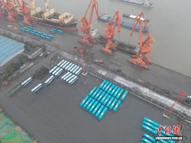 338辆国产巴士从上海龙吴口岸启程赴阿尔及利亚