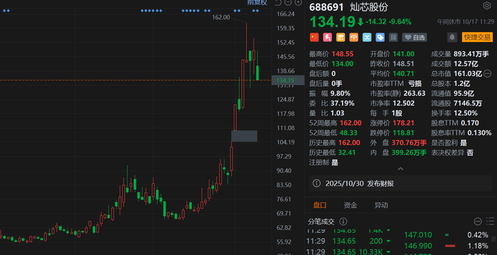 A股异动丨股东高位拟减持,灿芯股份午间大幅收跌9.6%