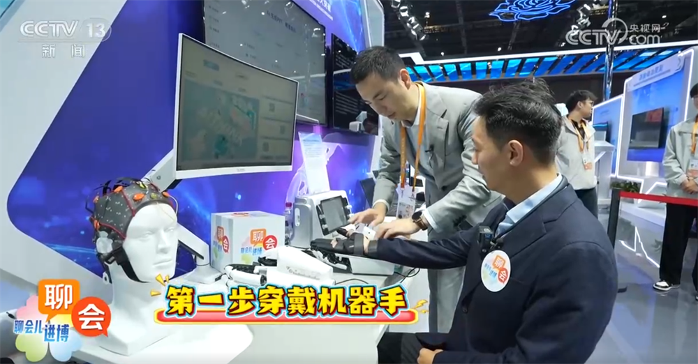 央视网消息:进博会从不缺前沿科技的惊喜,这一次,无需开刀的非侵入式脑机接口医疗设备惊艳亮相,让"想动就动"从奢望变成现实。 聊会儿进博,一起来感受科技以人为本的温暖力量。 脑机接口,经常听说,从没见过,正好找咱们工作人员、专业人士跟咱们一起聊会。 上海术理智能科技有限公司副总裁靳辉称:"这是一个非侵入式的脑机接口医疗设备。通过这个脑机接口的设备进行治疗训练,一段时间 以后,他就可以恢复正常的神经网络功能,也就是说,他可以自主地来进行运动。" 靳辉称:"现在您就假装自己是一个偏瘫的患者,您的右手没有任何知觉,一会儿,您在屏幕上会看到一些小猫抓鱼的动画,您就想象我 要去抓这个鱼,但是手现在您是没有任何知觉的,您不要使劲。然后这个信号就会传出去来控制机器手,带动您的手来运动,全部是意念控制 来完成。" 通过短短几分钟的体验,记者完全感知到了我国在前沿科技,尤其是脑机接口这一领域先进的程度,也让记者更加感知到平常老在说的一 些很抽象的名词,比如意识和意念,完全在那一刻彻底具象化了。当然了,还是那句非常重要的话,我们为什么要创新,为什么要发展科技, 因为一切都要以人为本。 ...