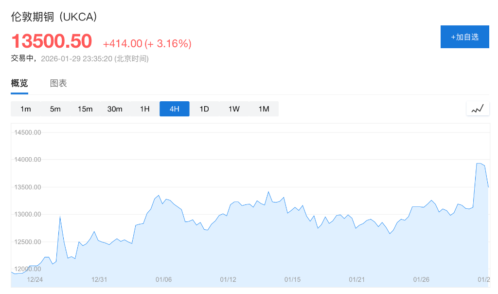 核心观点 - 伦敦金属交易所期铜价格飙升至历史新高,单日涨幅创逾十六年记录,此轮凌厉涨势主要由投机资金驱动[1] - 大宗商品新年涨势由多重宏观因素推动,包括美元贬值、对实物资产的避险需求、地缘政治紧张局势以及对美联储转向宽松货币政策的预期[2] - 市场呈现明显的板块轮动特征,投机资金广泛涌入,推动多种金属价格刷新纪录,但价格飙升与部分暗示供应充裕的基本面指标出现背离[5] - 铜价长期受到能源转型与全球数据中心扩张的结构性需求逻辑支撑,但当前惊人涨幅可能已超出实际需求支撑,市场面临技术性调整风险[6] 价格表现与市场动态 - LME期铜主力合约收盘大涨9.3%,报每吨14301.50美元,盘中一度突破14400美元关口,刷新历史高位[1] - 铜价自12月初以来已累计上涨约25%[2] - 亚洲交易时段涨势凌厉,伦敦时间凌晨2:30起不足一小时内,铜价飙升超过5%[1] - 当日其他基本金属普遍走强,LME铝价上涨1.8%,锌价上涨5%[2] - 上海期货交易所铜期货在夜盘开盘后进一步走高至每吨112000元人民币,此前在周四日间交易中已大涨5.8%,收于109110元[5] 驱动因素分析 - 投机资金是核心驱动,建发股份有色金属研究负责人分析称此轮上涨“完全由投机资金驱动”,考虑到时段特征,“很可能全部是投机行为”[1] - 宏观因素包括美元贬值、对实物资产的避险需求上升、地缘政治紧张局势[2] - 市场对美联储将转向更宽松货币政策的预期,为价格上涨提供了流动性层面的支撑[2] - 美联储主席鲍威尔称美国经济前景“明显改善”并维持利率不变,市场预期未来可能有更鸽派的央行领导推动更大降息力度[6] - 长期结构性需求逻辑在于能源转型与全球数据中心扩张将提升铜的长期需求[6] 交易活动与市场结构 - 投机狂热推动交易量激增,上海期货交易所成交量激增,2026年1月已成为其六大基本金属合约有记录以来交易最活跃的月份[5] - 上期所铜合约在周四录得史上第二大单日成交量[5] - 市场呈现板块轮动特征,从锡到白银的多种金属价格近期接连刷新纪录高位[5] - 铜价在每吨13000美元附近蓄势已久,资金布局酝酿了相当一段时间,当前上涨是预期累积释放的结果[5] - 一个市场悖论在于,LME铜期货出现升水扩大,这一结构通常暗示现货市场供应相对充裕,与价格的迅猛涨势形成对比[5] 前景展望与市场观点 - 分析人士指出,只要市场对美联储维持降息周期的预期不变,支撑铜价上行的宏观逻辑就依然存在[6] - 只要美国在人工智能、半导体和电网基础设施领域的投资持续推进,就难以对铜价顶部做出明确预判[6] - 高盛集团股票业务联席主管Trina Chen警告,当前金属价格的惊人涨幅可能已经超出了实际需求的支撑[6] - 随着价格高企导致实物买家望而却步,市场或面临一轮“技术性调整”[6] - 基本面需求能否匹配当前价格,已成为关键的风险变量[6]