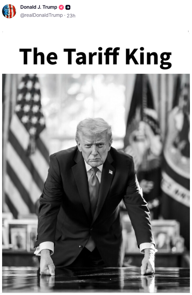 特朗普发布黑白照,自称“关税之王”