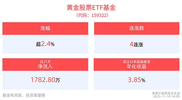 黄金股票ETF基金(159322)涨超2%已4连涨,兼具高景气与性价比品种!