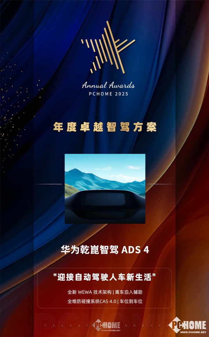 华为乾崑智驾ADS 4荣获PChome年度卓越智驾方案