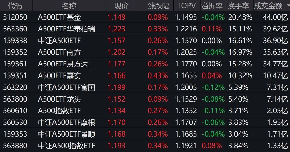市场早盘探底回升,中证A500指数上涨0.25%,3只中证A500相关ETF成交额超36亿元