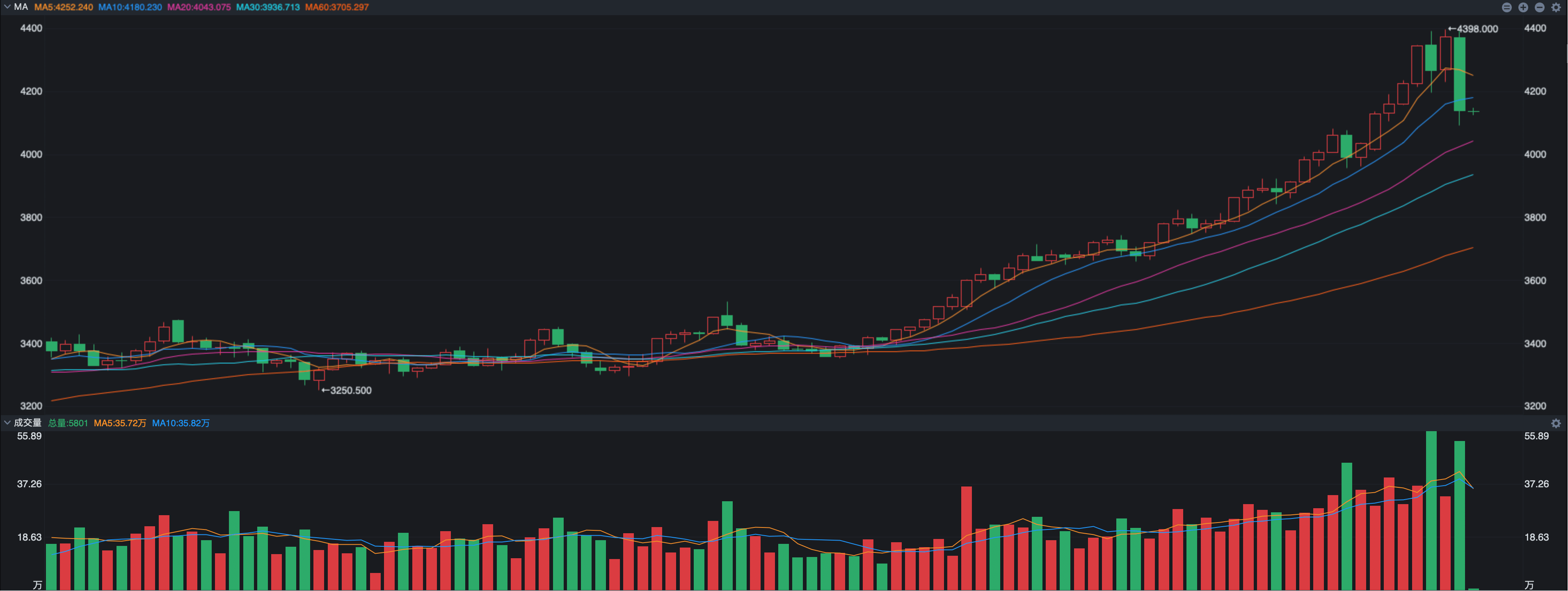 昨夜全球贵金属市场出现了剧烈波动,或者说是一次罕见的大跌。比较典型的是现货黄金跌幅最大时幅度达到了6.3%,到了4080美元每盎司,创下了最近 12年以来最大的单日跌幅; 从最终的收盘情况看,黄金最终下跌5%,白银下跌6.27%。 那么,昨夜贵金属为何会出现如此大的跌幅呢? 再来看看纽约期金的走势,盘中最大跌幅逼近6%,最低到了4100美元每盎司,收盘时候跌幅为5.39%,从形态上看,昨夜的那根大阴线几乎吞吃了过去5个 交易日的上涨,而周线走势上也形成了典型的阴线吞吃阳线的态势。 主要还是一些突发因素的影响:一方面是避险情绪的突然降温,比较典型的是外贸紧张的氛围出现缓解,还有俄乌方面的停战传闻,应该说后者对市场的投 资心态的影响至关重要,我觉得如果说昨晚黄金大跌,与此有极大的关系; 还有像白银的下跌更为令人震撼,盘中最大跌幅达到了8.7%,到了47.89美元每盎司,是最近4年以来最大单日跌幅; 另一方面就是此前的涨幅太大了,特别是上周的黄金周线出现了一根久违的大阳线,呈现出了明显的加速状态,一般来说走出这种态势的时候,往往意味着 阶段性上涨面临变盘,刚好昨晚外部局势出现缓解,市场情绪一下子转折了,才带来了金价 ...