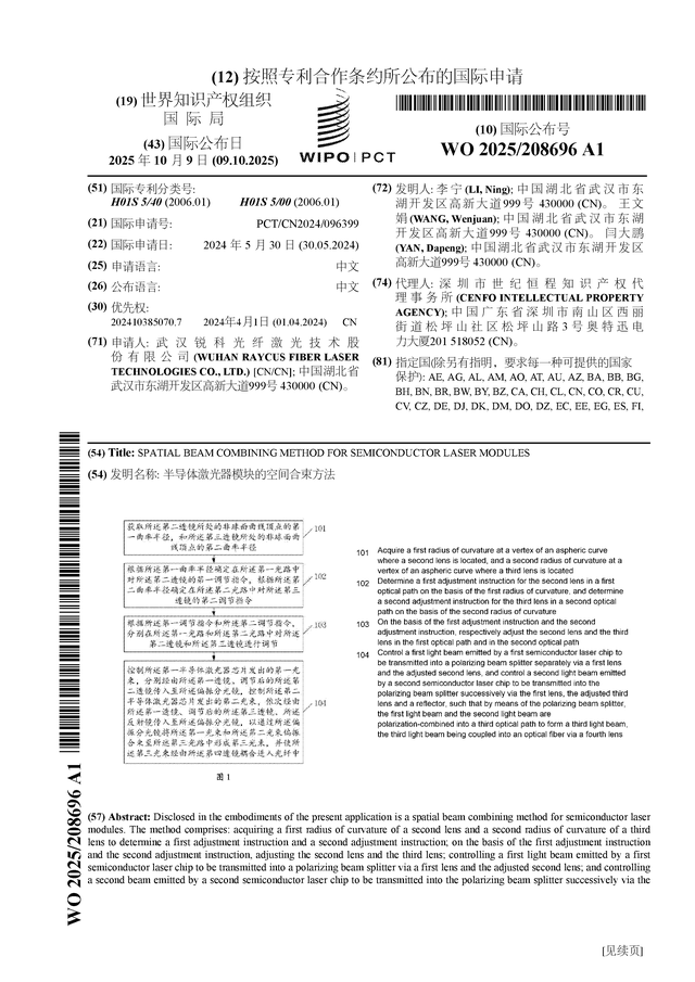 锐科激光公布国际专利申请:“半导体激光器模块的空间合束方法”