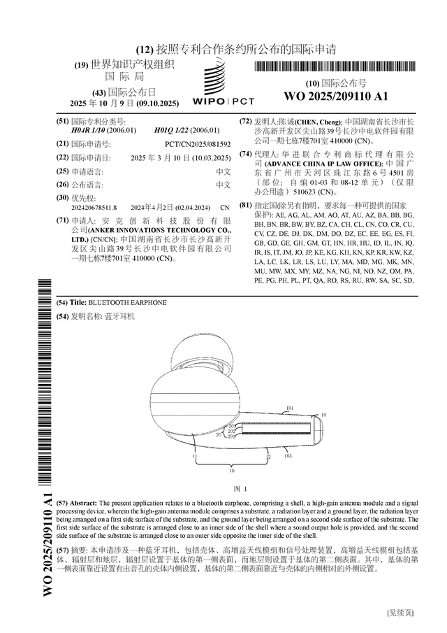 证券之星消息,根据企查查数据显示安克创新(300866)公布了一项国际专利申请,专利名为"蓝牙耳 机",专利申请号为PCT/CN2025/081592,国际公布日为2025年10月9日。 专利详情如下: 今年以来安克创新已公布的国际专利申请35个,较去年同期增加了250%。结合公司2025年中报财务数 据,今年上半年公司在研发方面投入了11.95亿元,同比增49.35%。 数据来源:企查查 以上内容为证券之星据公开信息整理,由AI算法生成(网信算备310104345710301240019号),不构成 投资建议。 图片来源:世界知识产权组织(WIPO) ...