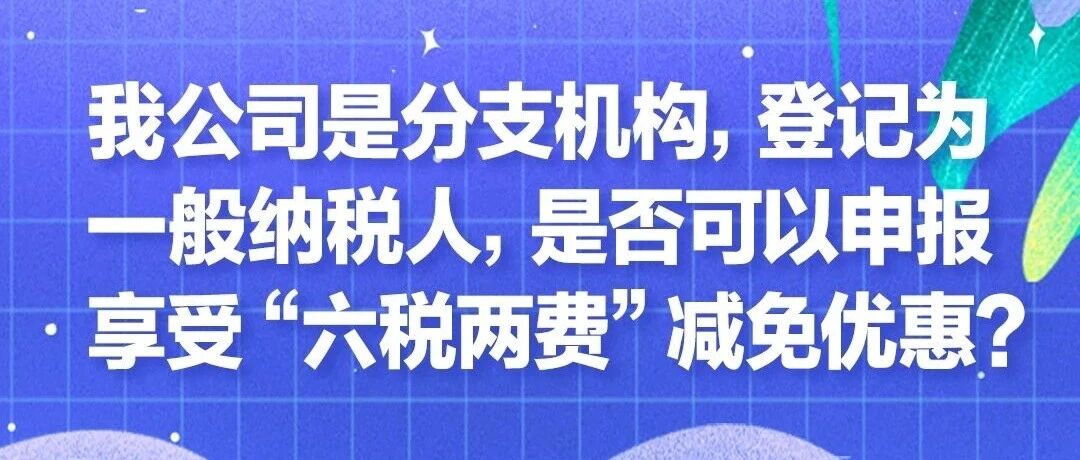 我公司是分支机构,登记为一般纳税人,是否可以申报享受“六税两费”减免优惠?