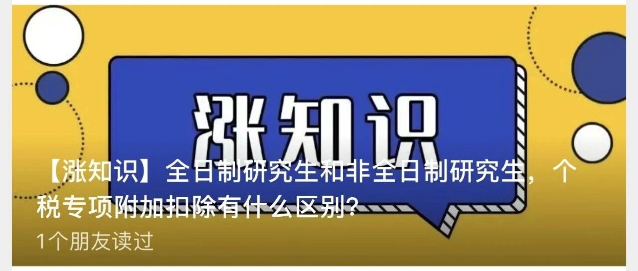 【涨知识】全日制研究生和非全日制研究生,个税专项附加扣除有什么区别?