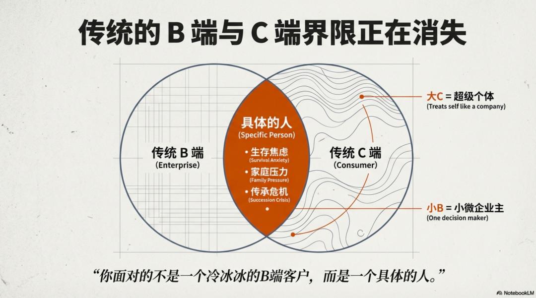 业务模式与客户定位 - 公司业务方向不应简单划分为B端或C端市场,界限正在模糊[1] - “大C”客户指将自己作为公司经营的超级个体,“小B”客户指年营收几千万、团队几十至几百人但核心决策靠老板一人的小微企业[1] - 服务小B客户本质是服务个人,客户决策深受其个人生存焦虑、家庭压力等情感因素影响[3] - 无论客户形式如何,业务最终交付的核心是人与人的信任[4] 个人品牌与内容策略 - 对于高客单价咨询或服务的一人公司,泛流量不仅无用反而是一种干扰,流量不等于变现[5] - 打造个人IP不应追求爆款和表演,真实、信任和长期持续才是关键[5][9] - 内容创作的核心在于选题、内容结构和拍摄场景,无需复杂化[6] - 真实状态和松弛感是建立信任的基础,能吸引对的目标客户[9][10] - 做内容拼的是能量场而非体力,紧绷、焦虑的状态会使用户迅速离开[17] - 松弛感是最高级的生产力,创作者处于自洽舒服状态时才华才能顺畅输出[18] 技术应用与效率提升 - 一人公司应用AI不应追逐最前沿技术,核心是思考如何将其融入自身工作流[11][12] - 将AI用于具体场景如替代选题会和复盘会,可极大提升效率[14] - 例如,将两小时直播回放转文字后交由AI总结成文章或提炼短视频脚本,仅需几分钟生成初稿,再经短暂润色即可完成高质量内容[14] - AI应用的本质是工作流革命,通过少数核心提示词将想法具象化,实现降本提效[15] - AI的意义在于让一人公司能节省文案、策划、助理等成本,实现“一个人活成一支队伍”[15] 工作思维与执行心态 - “精英”或“高知”人群容易陷入自我PUA,习惯于用加班、制造困难等方式证明价值,这种思维对打造个人IP是致命毒药[16][17] - 认知是通过迭代而非空想得出的,不应等待规划完全清晰再行动[19][20] - 成功需要持续在场、持续输出并在过程中修正认知,手感与网感均源于实践[22] - 担心被嘲笑是多余的,有人看才有关注,没人看才是问题[22] 优势定位与商业变现 - 进行性格或优势测评(如盖洛普、MBTI)对于商业变现意义有限,这些测试无法指明赚钱路径[23] - 商业变现与性格评测之间存在巨大鸿沟,需要“商业场景”来填补,这依赖于社会阅历和商业洞察[23] - 梳理个人优势应穷尽所有可能性,寻找与商业价值的连接点,关键在于将细分领域切到足够细的颗粒度[25] - 例如,将“互联网运营”具体拆解至“货运平台精细化用户运营”并拥有8年大厂经验,便可能成为该细分领域的顶尖专家,形成可降维打击的生态位[25] 客户筛选与风险管理 - 一人公司拥有对客户说“不”的权利,筛选客户是基本的风险控制,而非傲慢[26] - 筛选客户旨在规避未来风险,应寻找认可专业、尊重流程、价值观同频的合作伙伴[29] - 需警惕价值观不匹配的客户,例如仅以金钱为单一衡量标准、不尊重流程的客户,此类客户可能无视边界、随意提要求并在交付不如预期时翻脸,带来巨大后续成本[28] - 不应为短期利益服务使自身难受的客户,因为单笔收入可能无法弥补后续投入的时间与情绪成本[29]