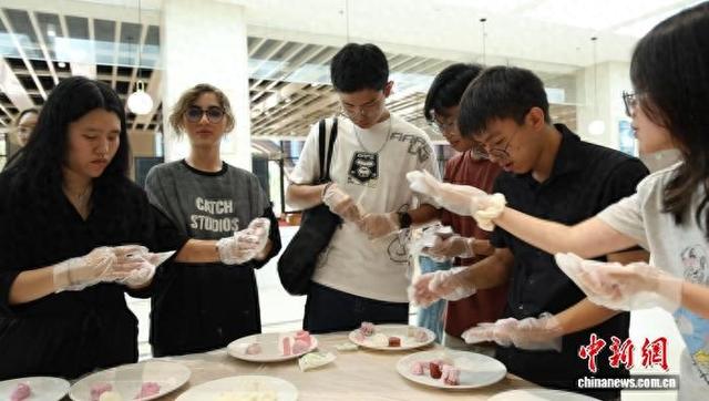 "我本身就是个月饼爱好者,虽然对一些中式馅料还不熟悉,但所有口味都让我着迷。"她告诉记者,在 伊朗有一个名为"诺鲁兹"的重要庆典,标志着春天的开始,"那时我们也会享用各式甜点,所以见到月 饼,我总会想起家乡的滋味。" 一次亲手制作的体验,让源自东方的传统文化,在国际学生们的交流与共鸣中,焕发出新的魅力。 中新网义乌10月4日电(张煜欢)桂花浮玉,秋色平分,临近中秋的浙江义乌,空气里飘荡着甜暖的香 气。在浙江大学"一带一路"国际医学院的食堂内,一场月饼制作体验活动吸引了不少肤色各异的2025级 新生。 他们围在桌案前,指尖揉捏着斑斓的面团,将好奇、惊喜,还有对故乡的思念、未来的憧憬,一同包裹 进这枚小小的东方糕点中。 图为国际 学子在食堂制作月饼。肖健 摄 月饼里的"世界"滋味 "这是我第一次制作月饼。最有趣的是,你可以随心选择面团的颜色,自由搭配不同口感,完全按照自 己的喜好来定制。"来自印尼的新生詹姆斯一边专注地调制着翠绿的抹茶饼皮,一边兴奋地分享道。 对他而言,这不仅仅是一次手工体验,更是一份准备跨越重洋的惊喜。"我打算把做月饼的经历分享给 在印尼的家人,他们过去不太了解月饼的传统,相信他们也会觉得非常有 ...