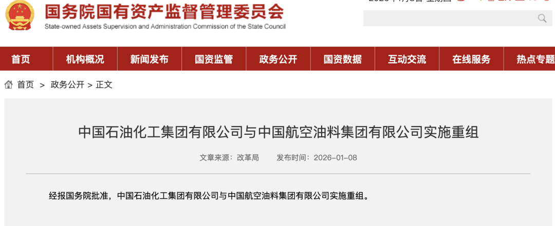 国务院国资委1月8日消息,经报国务院批准,中国石油化工集团有限公司与中国航空油料集团有限公司实施重组。 中国航空油料集团有限公司成立于2002年10月11日,总部位于北京。公司是亚洲最大的集航空油品采购、运输、储存、检测、销售、加注于一体的航油供 应商,不仅构建了覆盖全国的航油销售网络和完备的油品配送体系,还通过旗下中国航空油料有限责任公司,在全球280多个机场为400多家航空客户提供 航油加注服务。 公司原隶属于中国人民解放军空军,1980年随同民航从空军建制分立出来,1990年组建中国航油总公司,2002年在此基础上成立中国航空油料集团公司, 并于2003年成为国务院国资委直接管理的中央企业。 中国石化作为全球最大炼油商,拥有完整的上游勘探开发、中游炼化加工与下游化工销售网络;中国航油则拥有覆盖全国机场的加注网络、专业检测能 力、国际采购通道与物流调度系统。业内人士分析表示,中国石化与中国航油虽分属能源产业链不同环节,但在航煤业务上可以形成深度协同:中国石化 提供航煤产能,中航油负责全国机场加注网络,二者共同构成民航业的航油供应链核心。二者的结合不仅保障了能源安全,也将助力降低航空燃料供应成 本,增强我国 ...