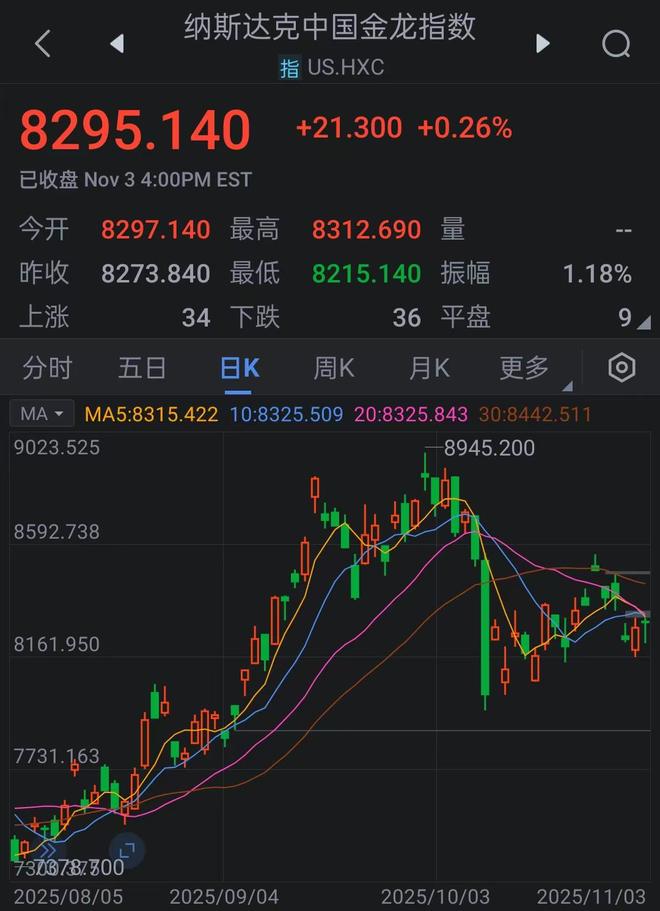 每经AI快讯,11月4日,热门中概股涨跌不一,纳斯达克中国金龙指数涨0.46%。亚朵涨5.7%,腾讯音 乐涨3.8%,小米涨3.4%,蔚来涨2%;阿里巴巴跌1.7%,理想跌1.9%,小马智行跌2.3%。 ...
