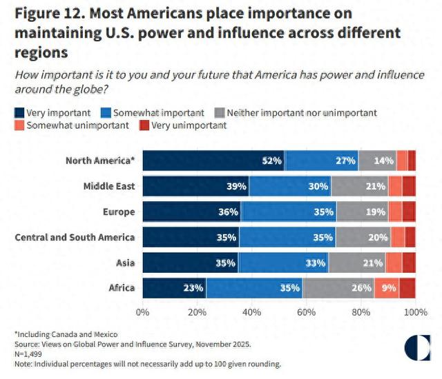 美国公众对中美实力对比及竞争的看法 - 54%的美国受访者认为,如果中国在全球实力和影响力上超越美国,他们的生活不会受到影响 [1] - 8%的受访者认为中国超越美国将使他们的生活得到一定程度的改善 [5] - 总计62%的美国受访者认为中国赶超美国并不会导致美国民众的生活水平下降 [6] 美国公众对美国全球地位及影响力的认知 - 59%的受访者认为美国只是“几个强大且有影响力的国家之一”,41%的受访者相信美国仍然是“最强大、最具影响力的国家” [1] - 超过半数的美国受访者认为美国的相对实力正在下降,国际社会不会重回“单极世界”格局,只有28%的受访者相信美国“正在维持或加强实力” [1] - 对于在亚洲维持力量和影响力,认为“非常重要”或“比较重要”的受访者合计68%,在所有地区中排在第五位,美国民众更重视美国在北美地区的影响力 [2][9] 不同群体对华态度的差异 - 在18至29岁的年轻受访者中,25%认为中国的实力和影响力更强,43%认为两国实力和影响力相当,只有32%认为美国更强大 [9] - 共和党选民更担心中国超越美国,而绝大多数民主党选民则不认为中国崛起会影响他们的生活水平 [9] - 仍有接近一半的受访共和党选民认为,如果中国赶超美国,他们的生活将维持不变或变得更好 [9] 美国政策精英与公众的认知差异 - 报告指出,美国公众与华盛顿的政策专家之间存在脱节,美国公众不愿意为美国政府“遏制中国实力和影响力”的目标付出太大代价 [1][10] - 美国许多外交政策专家将亚洲视为美国保持实力和影响力的“最重要地区”,但美国民众的想法完全不同,他们更关心美国本土所在的北美地区 [9] - 多数美国人并不认为中国赶超美国将给他们带来“灾难性后果” [9]