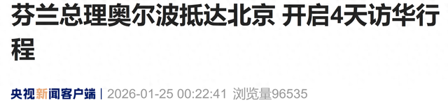 芬兰是最早承认并同新中国建交的西方国家之一,也是第一个同中国签订政府间贸易协定的西方国家。 近年来,在两国元首擘画引领下,中芬面向未来的新型合作伙伴关系不断深化,各领域务实合作持续推 进。2025年,中芬双边贸易额超过80亿美元,双向投资存量超过230亿美元,两国企业对加强互利合作 的热情持续高涨。 商务部发言人介绍,访问期间,商务部将与芬方签署《关于加强中芬创新企业合作委员会工作的谅解备 忘录》,双方企业还将签署多项商业合作协议。 据了解,奥尔波总理此访将率20余家企业高管随访,涵盖机械、森林工业、创新、清洁能源、食品等芬 兰优势领域。 中国外交部发言人此前在谈到奥尔波总理访华时表示,中方高度重视中芬关系发展,愿同芬方密切高层 交往,巩固政治互信,加强经贸合作,促进人文交流,在多边事务中增进相互理解与协作,共同推动中 芬关系迈上新台阶。 今天(25日)凌晨,芬兰总理奥尔波乘机抵达北京首都国际机场,开启为期4天的访华行程。 访问期间,习近平主席将同他会见,李强总理、赵乐际委员长将分别同他会谈、会见,就双边关系和共 同关心的问题深入交换意见。 来源 | 央视新闻客户端 ...