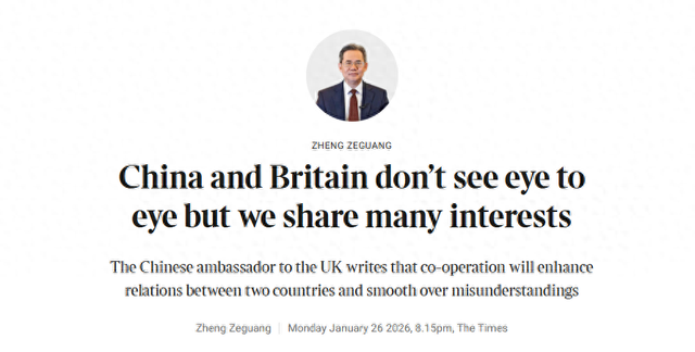 郑泽光大使在英国《泰晤士报》发表署名文章:中英之间虽存在一些分歧,但更拥有众多共同利益 北京时间1月27日,英国《泰晤士报》刊发中国驻英国大使郑泽光关于中英关系的文章,题为《中英之 间虽存在一些分歧,但更拥有众多共同利益》。该报的编者按称,中国大使指出,开展合作有助于加强 两国关系并避免误解。郑泽光大使的文章全文如下: 中英之间虽存在一些分歧, 但更拥有众多共同利益 我们应该拓展务实合作。英国工党政府把促进经济增长、降低生活成本、加快绿色转型作为核心目标, 还出台了现代产业战略等政策文件。中国着力推动高质量发展,坚持全面深化改革开放,正在制定"十 五五"经济社会发展规划。世界第二大经济体正同各国分享其强大的市场需求,向合作伙伴提供更多的 先进技术、投资和价廉物美的产品。同中国加强合作,只会有助于英国实现自身发展目标。英国企业和 消费者对此越来越有亲身感受。我们应该拓展贸易投资、金融服务、清洁能源、打击跨国犯罪、教育人 文、科技创新以及应对气候变化、公共卫生等广阔领域的对话、协调与合作,拉长合作清单,给两国人 民带来更多实实在在利益。 中方欢迎斯塔默首相对中国进行正式访问。英国首相上次访华还是2018年。过去8 ...