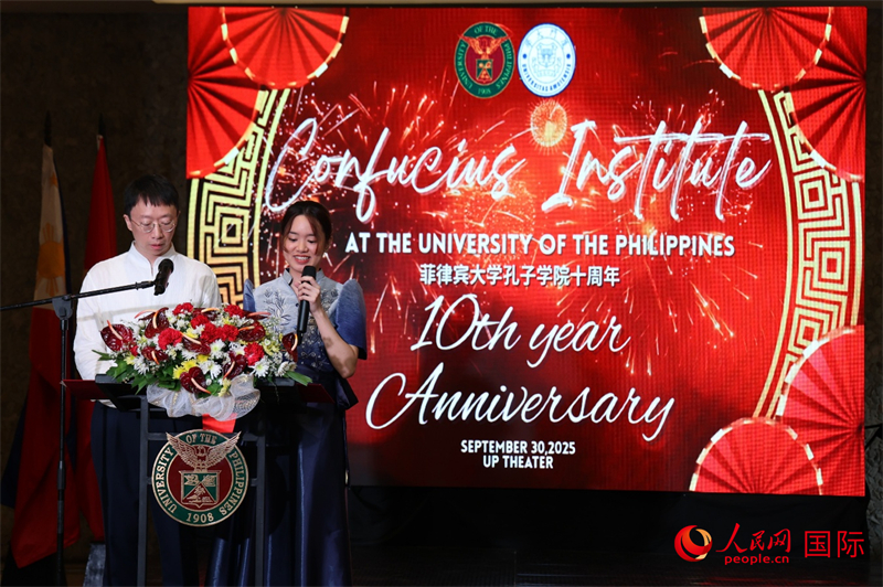 人民网马尼拉10月1日电 (记者樊帆)9月30日,菲律宾大学孔子学院十周年庆典在菲律宾大学迪利曼校区大 学剧院隆重举行。中国驻菲律宾大使馆参赞熊胜、厦门大学副校长史大林、厦门大学国际中文教育学院书记许美 霞,菲大迪利曼校区校长埃德加多·威斯坦、菲大迪利曼校区前校长陈万杰等嘉宾出席庆典并致辞。菲大孔院中方 院长智晓静、菲方院长陈璐,以及来自中菲两国政府、教育、企业、华社、媒体等各界代表与各孔院师生200余人 出席。 菲律宾大学孔子学院在菲大迪利曼校区大学剧院成功举办十周年庆典活动。人民网记者 樊帆摄 熊胜在致辞中表示,十年来,菲大孔院不仅为菲律宾中文教育事业作出了扎实贡献,更成深化中菲人文往 来、推动文明互鉴的重要平台。中国驻菲律宾大使馆将一如既往地支持菲大孔院的发展,并期待孔院在未来十年 再创辉煌。 厦门大学副校长史大林与菲大迪利曼校区前校长陈万杰代表两校互赠纪念礼物,以志久谊。人民网记者 樊帆摄 史大林回顾了两校跨越百年的学术交流史与源远流长的伙伴关系,高度肯定菲大孔院十年来在推动中菲教育 合作中的重要作用。菲大孔院不仅培养了数千名中文人才,还促成了多领域学术合作项目,这些成果彰显了中菲 友好的深厚基础。 ...