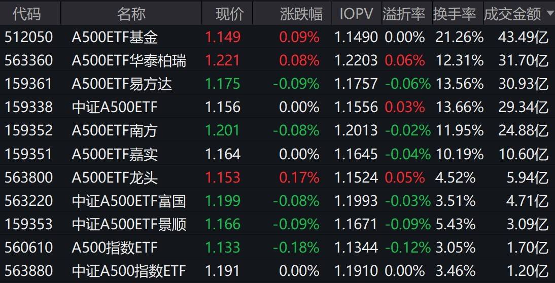 市场早间冲高回落,中证A500指数下跌0.01%,3只中证A500相关ETF成交额超31亿元