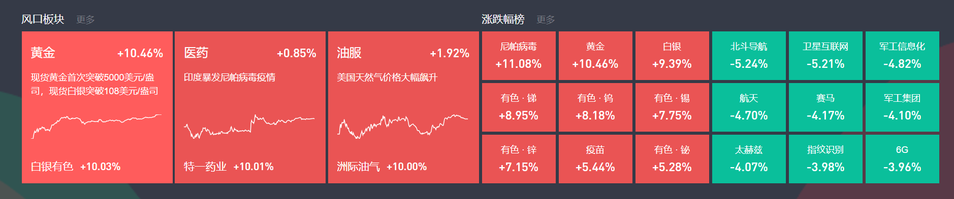 1月26日主题复盘 | 黄金等贵金属持续大涨,医药、云计算迎资金关注