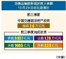 前三季度交通固定资产投资达2.6万亿元 铁路投资同比增长5.8%