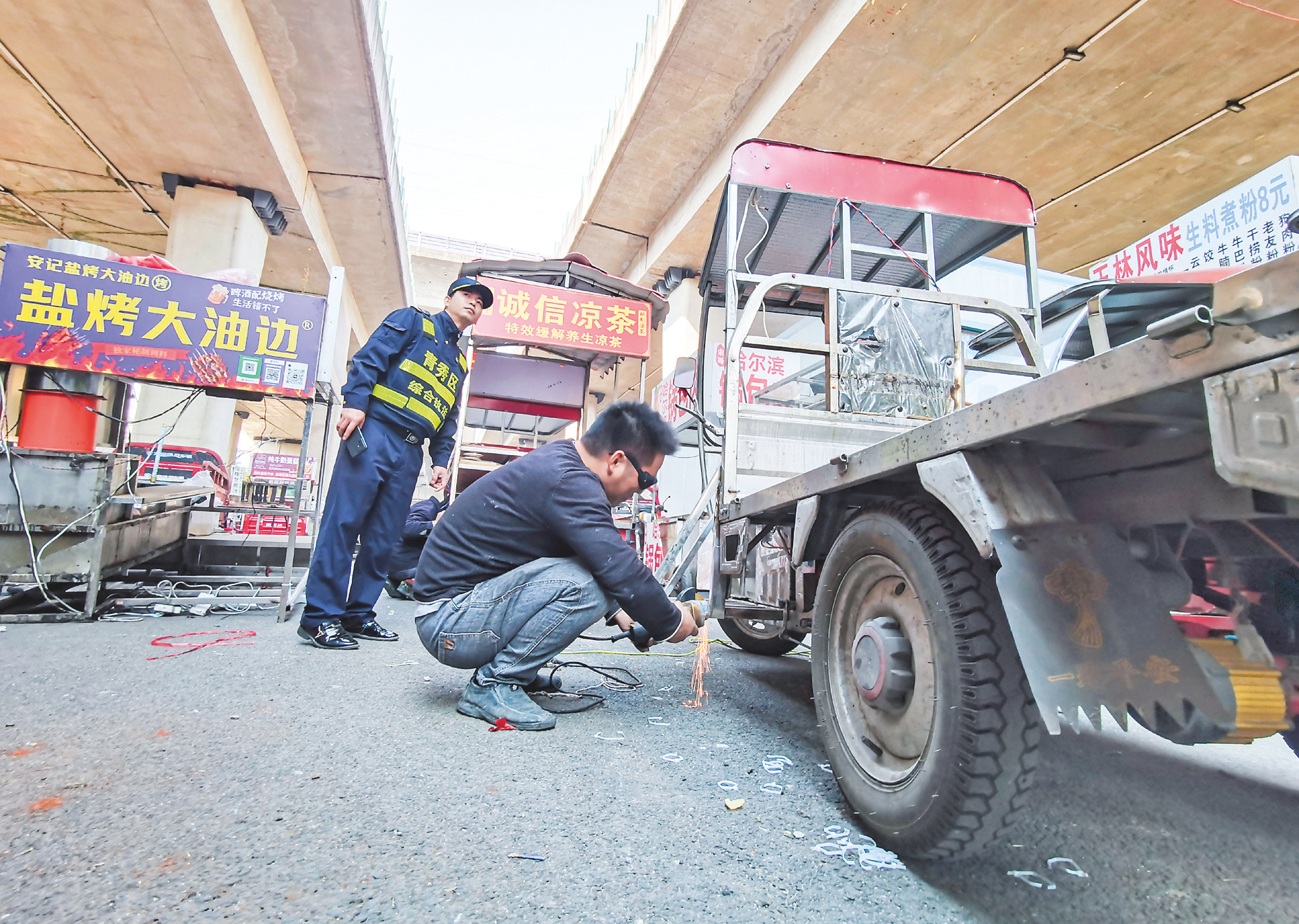 此次现场整改由南宁市市政和园林管理局(南宁市城市管理综合行政执法局)与南宁市公安局交通管理支队联合开展。记者看到,被暂扣的车辆均被改装 成"移动店铺",有的加装了近2米长的广告牌,有的焊接了多层货架。"这些车原本只是普通三轮车,但摊主为了方便,加装了框架、大型招牌,不仅明显增 大车辆体积,还严重遮挡驾驶视线,导致上路行驶时安全隐患很大。"现场一名交警介绍。 南宁市青秀区综合行政执法队常务副队长谢海欣介绍,青秀区长期严厉整治流动摊点占道经营问题。在整治中,执法人员发现,很多摊主使用无牌无证三轮 车,并擅自改装后沿街摆卖。自2025年12月17日青秀区组织城管、交警等部门开展联合执法以来,已暂扣了200多辆改装并违法经营的车辆。 工作人员正在拆除加装设备,恢复车辆原状。 本报记者韦峭 摄 "这种非法改装车存在安全隐患,容易引发交通事故,危害市民出行安全。"南宁市公安局交通管理支队事故预防处理大队教导员高磊介绍,加装的铁框、招 牌等改变了车辆结构,增加了行驶风险,交警部门将持续整治这类违法行为。 本报讯(记者韦峭)1月14日,在青秀区凤岭南路的一处暂扣物品存放仓库内,停放着多辆因违法改装、占道经营被暂扣的三轮车和电 ...
