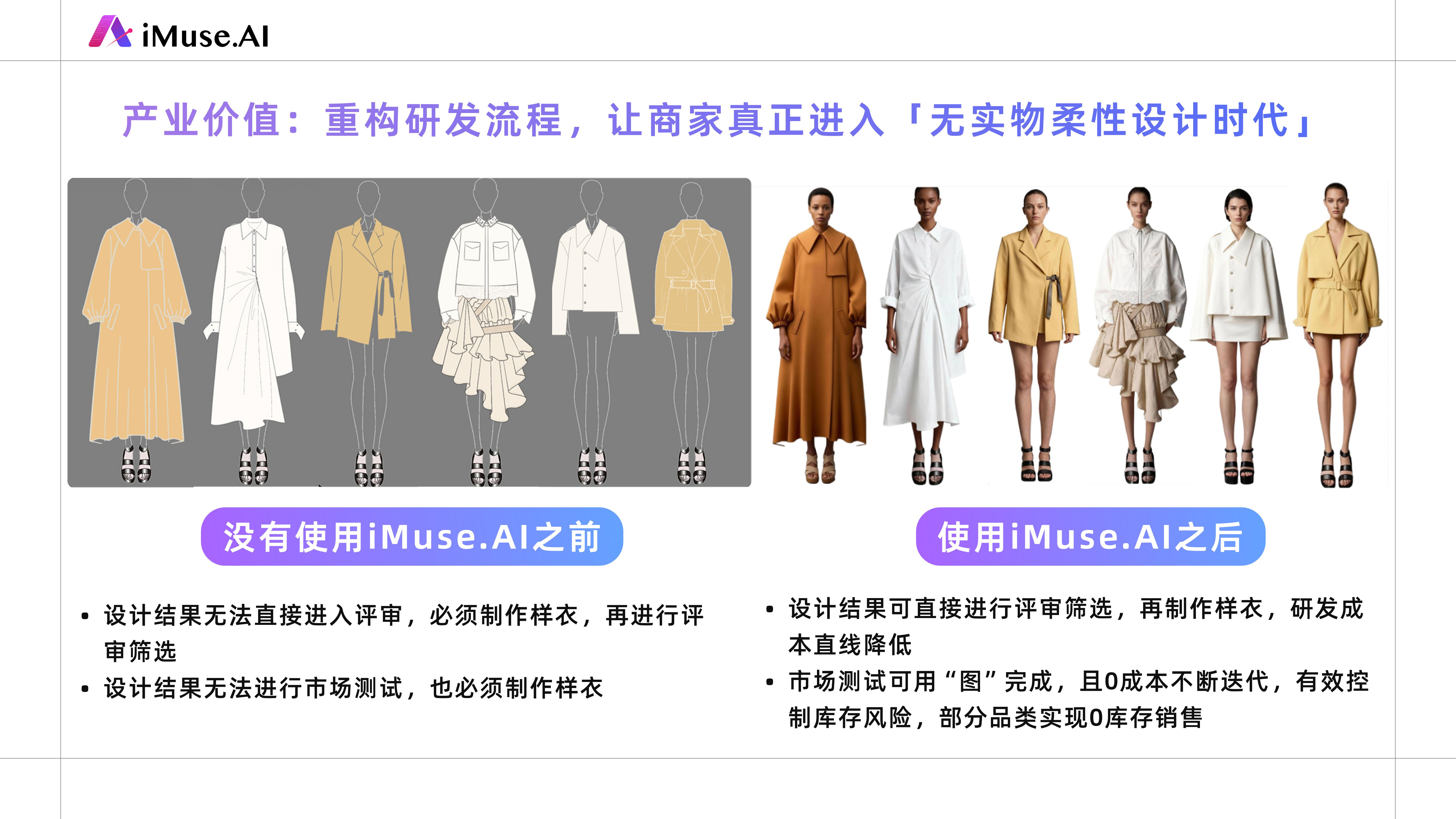 2026年,AI 行业发展或将迎来分水岭,从以概念与叙事为主的时代,迈入真正接受市场检验的应用落地阶段。 1月10日,在AGI-Next前沿峰会上,清华大学教授、智谱创始人唐杰给出了一个关键判断:"DeepSeek横空出世后,Chat范式的竞争已经基本结束,下一步是 走向做事。" 而围绕 AI 模型 在ToC与ToB端的分化趋势,姚顺雨也指出,相比ToC市场,ToB场景中的用户更愿意为模型能力支付溢价,因为这些 AI 工具能 够帮助企业主提升实质性的工作效率。 虚拟研发:大幅提升行业效率 作为中国首个专注于服装设计的智能平台,iMuse.AI致力于解决服装行业长期存在的几大结构性问题:创意同质化严重、价格战激烈,以及产品研发与真实 市场需求之间的脱节。产品投入市场仅 6 个月,iMuse.AI 已与歌力思集团、博洋集团、江南布衣等多家头部服装企业建立合作。 iMuse.AI 创始人顾莹樱拥有超过 10 年的科技与服装行业从业经验。她指出,当前服装行业普遍陷入两难处境:一类企业选择跟随爆款,通过复制和价格竞 争维持规模,但利润被不断压缩,研发投入难以为继,最终形成恶性循环;另一类企业尝试打造差异化品牌,却往往面 ...
