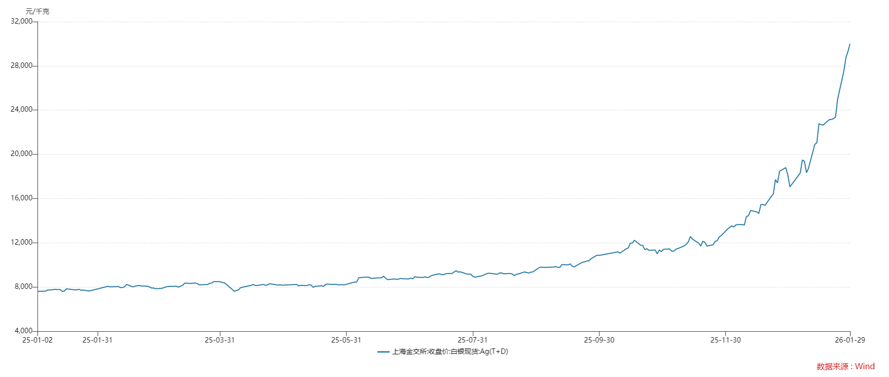 此次定增的预案于2024年8月提出,公司拟募资8.87亿元,其中3.41亿元用于建设年产太阳能电子浆料500吨项目。苏州固锝当下的年产能为800吨/年,也就 是说,该项目经历T+5年达产后,公司产能将增长62.5%,达到1300吨/年。 出品:新浪财经上市公司研究院 作者:光心 近日,苏州固锝的定增方案终于获得通过。 然而,从苏州固锝近期的业务表现来看,其光伏银浆业务正经历着产能利用率和毛利率的"双杀",此时兴建产能,其背后的产能消化风险及项目盈利风险难 以忽视。 银价上涨带来盈利压力 募投项目产品毛利率低于设计预期 白银兼具金融与工业双重属性,其金融属性定价通常以黄金为基准,而商品属性则由供需平衡决定。近期美联储主席被调查等事件引发避险情绪,叠加光 伏、新能源等工业领域的白银需求带来价格支撑,白银价格出现高涨。 据Wind EDB数据,2025年,上海金交所白银现货价格持续上涨,三季度以来增长曲线开始变得陡峭,年末更是直接进入"飙涨"模式。2025年11月28日到 2026年1月29日,其价格从12669元/千克迅速上涨至29998元/千克,2个月时间便实现翻倍。 2025年来银价变动情况(资料来源:Win ...