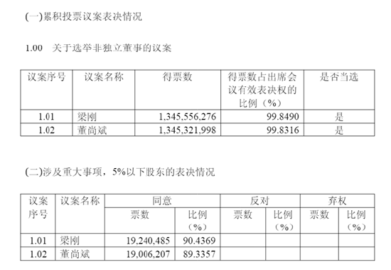 出品:新浪财经上市公司研究院 作者:光心 2025年11月17日,中银证券召开年度第三次临时股东大会,会议上对选举两位非独立董事的议案进行表 决,两项议案均以超99.8%的赞成票通过,两位董事梁刚、董尚斌将正式履职。 据公开资料,二人均来自中石油系,而中石油旗下的中国石油集团资本有限责任公司也是中银证券的第 二大股东,持股比例14.32%。 然而,值得注意的是,公告同时披露5%以下股东的表决情况,在小股东表决中,梁刚所获得的同意票 占比为90.44%,董尚斌获得的同意票占比为89.34%,也就是说,大约有10%的小股东投了反对票或弃权 票。 | 议案序号 | 议案名称 | 得票数 | 得票数占出席会 | 是否当选 | | --- | --- | --- | --- | --- | | | | | 议有效表决权的 | | | | | | 比例 (%) | | | 1.01 | 梁刚 | 1.345.556.276 | 99.8490 | 是 | | 1.02 | 董尚斌 | 1.345.321.998 | 99.8316 | 是 | | 以案 | 议案名称 | 可意 | | 反对 | | 弁权 | | | -- ...