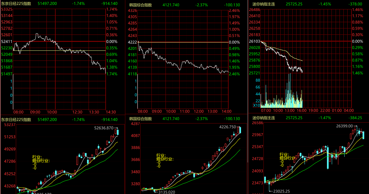 全球及中国股市近期表现 - 中国A股市场再度缩量探底,两市成交额重新跌破2万亿,创业板指和深成指领跌,沪指在银行等红利板块护盘下表现相对抗跌[1] - 创业板指向下反包昨日小阳线并跌破30日均线,科创50指数走出日线四连阴,沪指仍得到20日均线支撑,短期或以时间换空间的区间震荡结构为主[1] - 近期大涨板块轮动明显,包括福建自贸/海西概念、针基熔盐堆、医药、锂电池、业绩增长、ST股等[3] 国际投行对全球市场的展望 - 高盛和摩根士丹利警告投资者,未来两年全球市场将出现回落[4] - 两大投行均指出未来几年亚洲将成为全球市场中的亮点[4][6] - 高盛预计全球资本配置者将继续对中国感兴趣,摩根士丹利看好中国、日本和印度股市[4][6] TMT板块的资金状况与风险 - 机构资金高度集中于TMT板块,形成"史诗级抱团",股价已包含大量乐观预期[7] - 公募基金整体股票仓位处于高位,其继续加仓TMT的能力减弱,板块表现需依赖其他增量资金如外资、险资[7][9] - TMT板块面临高拥挤度下的波动隐患,高估值背景下上市公司业绩能否匹配预期存在压力,电子等板块的融资盘活跃可能放大波动[9]