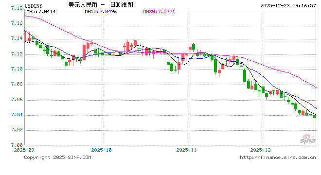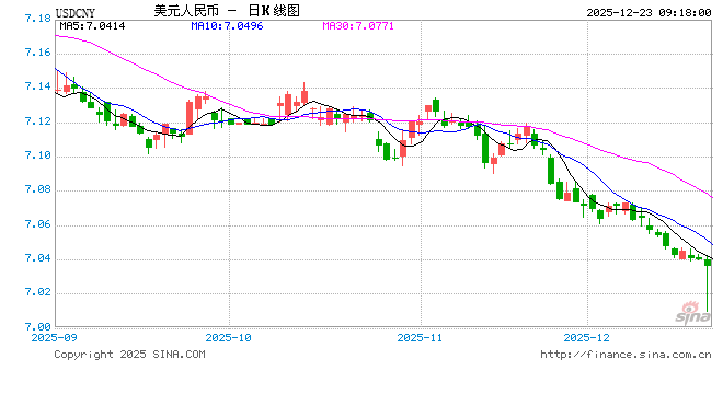 人民币兑美元中间价报7.0602,上调54点 创2024年10月9日以来新高!离岸人民币升破7.04