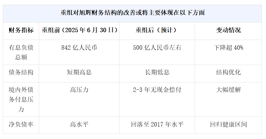 随着境外债务重组方案于2025年底正式生效,历经三年化债攻坚的旭辉控股(00884),最终成功实现"困境反转"的关键跨 越。 作为行业内率先完成境内外债务重组的民营房企之一,旭辉通过约430亿元人民币的债务削减规模及债权人的高度支持, 不仅为自身筑牢"活下去"的坚实根基,也在当前房地产行业深度调整阶段,为市场化、法治化风险处置提供了可参照的 标杆实践范本。在行业整体承压背景下,此次重组的成功或标志着民营房企正从"风险出清"过渡至"价值重构"的新阶 段。 三年化债攻坚,改善资产负债表 旭辉的债务重组始于2022年11月,彼时房地产行业流动性持续承压,多家民营房企陷入债务困境。面对境内外合计超660 亿元的待重组的信用债务,旭辉并未选择"躺平",而是主动启动了一场覆盖境内外的全面债务重组攻坚。 截至2025年6月30日,旭辉的归母净资产为64亿元(约合70亿港元),是少数几家在债务重组前归母净资产仍为正的民营房 企。重组产生的债务削减部分,预计会以重组收益形式进一步增厚归母净资产。结合旭辉境外超300亿元的化债规模测 算,重组后该公司归母净资产有望实现显著提升。当前公司市值不足20亿港元,对应潜在市净率不足0.1 ...