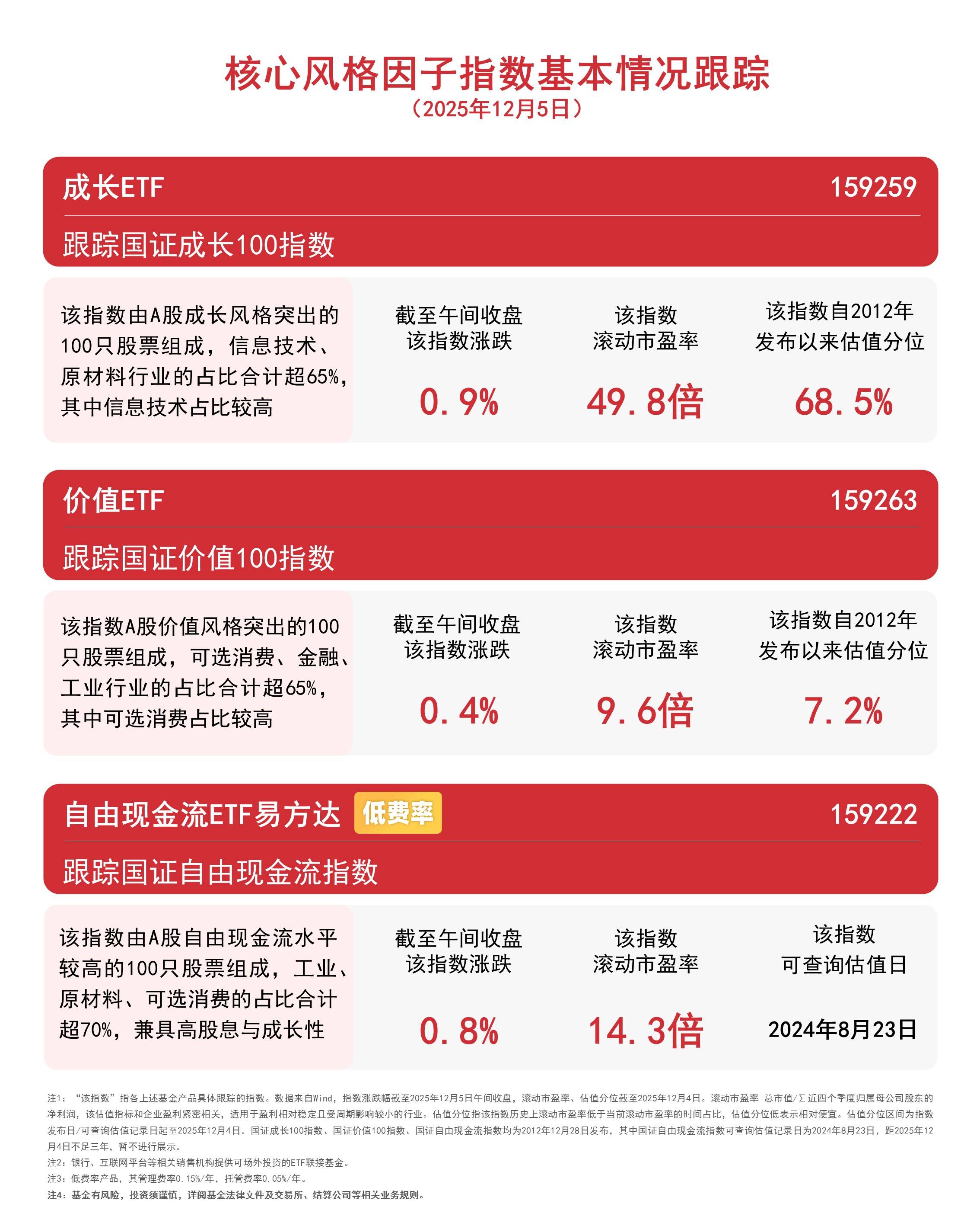 市场表现与资金流向 - 今日早盘,有色金属、保险等板块持续走强,带动价值风格上行 [1] - 国证成长100指数上涨0.9%,国证自由现金流指数上涨0.8%,国证价值100指数上涨0.4% [1] - 跟踪国证价值100指数的价值ETF(159263)早盘净申购达300万份,显示相关产品受资金关注 [1] 指数与产品特征 - 国证价值100指数采用“高分红+高自由现金流+低市盈率”三维筛选体系,旨在优选价值标的,历史表现稳健 [1] - 价值ETF(159263)跟踪国证价值100指数,为投资者提供把握价值风格投资机遇的工具 [1]