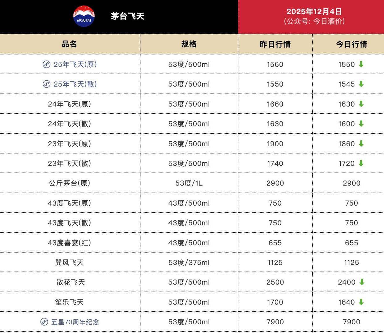 茅台价格持续下跌!今日25年飞天散瓶批价报1545元瓶,什么原因?