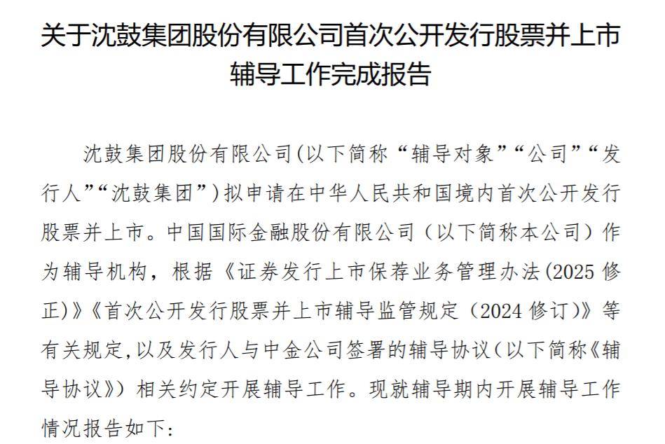 瑞财经 王敏 12月15日,沈鼓集团股份有限公司(以下简称"沈鼓集团")披露IPO辅导工作完成报告,拟冲击A股,辅导机构为中金公 司。 据了解,沈鼓集团于2024年7月启动IPO,自2024年7月4日至本报告出具之日,公司共开展了五期辅导工作。 据辅导报告,沈鼓集团成立于1979年10月,注册资本27.99亿元,法定代表人为戴继双。公司控股股东为沈阳市铁西区国有资产经营有 限公司,持有公司43.07%的股权。 沈鼓集团是一家风机及泵类产品制造商,公司主要产品包括驱动用汽轮机、单轴多级等温型离心压缩机、工艺流程用往复式压缩机、 LDTNB型凝结水泵、送风机、GM鼓风机等,并且公司为用户提供备件、技术咨询以及维修服务。 辅导报告显示,辅导工作小组在尽职调查过程中发现,公司曾存在转贷、票据使用不规范等内控不规范情形,针对上述情形公司已积 极进行整改和清理。同时,辅导工作小组协助公司修改完善了相关财务内控制度文件,并督促公司严格执行。 相关公司:沈阳国资 ...