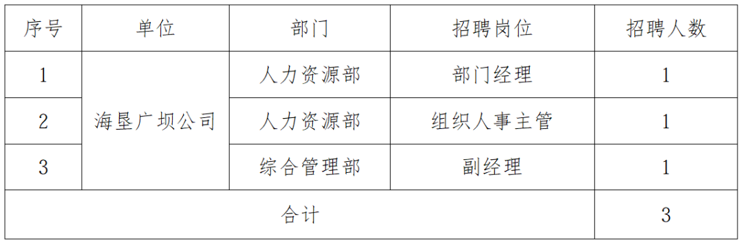 公司概况 - 公司全称为海南农垦广坝农场有限公司,位于海南省东方市境内,总部设在东河镇原广坝农场场部,距离东方市27公里 [1][7] - 公司于2017年由原国营广坝农场、红泉农场、公爱农场改制成立,注册资本金为5000万元人民币 [1][7] - 公司经营范围包括农业用地管理、农作物种植、畜牧养殖、水产养殖等 [1][7] - 公司下属企业有1个,为东方海垦广坝现代农业开发有限公司 [1][7] 招聘计划与岗位 - 公司根据业务发展需要,现面向全国公开招聘工作人员 [1][7] - 本次招聘总计3个岗位,招聘人数合计为3人 [2][7] - 具体招聘岗位包括:人力资源部部门经理、人力资源部组织人事主管、综合管理部副经理 [2][7] 招聘原则与基本条件 - 招聘遵循公开、公平、公正原则 [4][14] - 招聘遵循德才兼备、以德为先、任人唯贤原则 [4][14] - 招聘遵循竞争上岗、择优聘用原则 [4][14] - 应聘者需拥护中国共产党的领导,遵守宪法和法律,无违法及失信行为 [5][8] - 应聘者需具有良好的政治素质,拥护中国共产党的路线、方针和政策 [5][8] - 应聘者需具有良好的职业道德和履职记录,以及正常履行职责的身心素质 [5][8] - 应聘者需具备符合岗位要求的年龄、学历、资质及工作经历,相关计算截止时间为2026年2月14日 [5][8] - 应聘者需认可海垦企业文化、热爱并甘于奉献海南农垦 [5][8] 招聘流程与报名方式 - 招聘程序包括个人报名、资格审查、考试、背景调查、报核、体检、录用等环节 [2][11] - 报名需下载并填写《海南农垦广坝农场有限公司应聘人员报名登记表》,并粘贴近期免冠彩色电子照片1张 [2][12] - 报名材料需发送至指定邮箱 hkgbrlb@163.com,邮件主题格式为“应聘岗位+姓名+联系电话” [2][12] - 报名截止时间为2026年3月15日 [2][12] - 每人仅限报名一个岗位,不得兼报 [6][18] 报名所需材料 - 需提供《海南农垦广坝农场有限公司应聘人员报名登记表》电子版 [3][13] - 需提供有效期内的第二代身份证或护照扫描件 [3][13] - 需提供学历、学位证书扫描件 [3][13] - 需提供从学信网下载的学历证书电子注册备案表及学位在线验证报告,国外学历需提供教育部认证书 [3][15] - 需提供岗位要求的专业技术资格证、职(执)业资格证、获奖证书等材料扫描件 [3][16] - 除登记表外,其他所有报名材料需扫描并打包成一个PDF文档 [3][17] 招聘注意事项 - 公司将通过电子邮件、短信、电话等方式通知各环节事宜,应聘者需确保联系方式正确畅通,否则视为自行放弃 [6][18] - 应聘者需如实提供材料,凡弄虚作假者将取消资格或解除聘用 [6][19] - 公司承诺对收集的招聘资料严格保密,仅用于本次招聘申请 [6][20] - 公司有权根据实际情况对招聘工作进行调整,并对本次招聘拥有最终解释权 [6][21] - 岗位职责、任职条件及薪酬福利等详细信息需参见文末附件1 [9][10]
