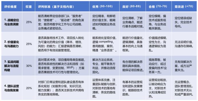 第二,缺乏行业技术趋势认知,无法判断人才储备的前瞻性; 第三,面试问题模板化,忽视实际业务场景中的应变与创新能力考察; 这种错位导致企业常将"懂管理但技术薄弱"或"精技术却缺乏战略思维"的人选引入关键岗位。导致选人 用人出现偏差。某企业HR部门负责人向老杨求助希望能帮忙梳理一份针对信息部门负责人的面试题 库,粉丝的要求必须满足,于是老杨连夜整理出这份兼具技术深度与战略高度的面试题库,从HR及高 层分管领导视角侧重考察侧重考察候选人的胜任力与价值观、变革管理与领导力、文化融合与沟通能 力、顶层战略与业务洞察力、实战落地与管理能力、价值呈现与风险控制能力,确保其既能破解企业数 字化的核心难题,又确保其符合企业文化和组织要求。 又到了年末人才流动的高峰期,很多企业开始筹备新一年的团队搭建与人才储备,技术岗位的招聘需求 尤为旺盛。信息部门作为企业数字化转型的核心引擎,企业对其负责人的专业素养与战略视野要求愈发 严苛,但问题是HR部门数字化能力普遍不足,具体表现在如下方面: 第一,对技术术语理解肤浅,难以精准评估候选人能力; HR视角考察 问题1:定位与自我认知能力考察 在你看来,一个成功的信息部门负责人,是企业IT服 ...