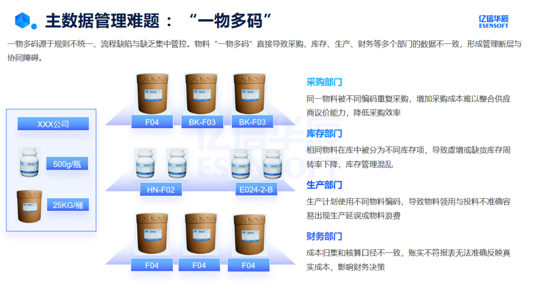数据混乱是企业数字化转型的普遍痛点 - 系统孤岛与数据不一致正成为企业运营中昂贵的隐性成本 严重吞噬企业效率和利润[1][2] - 同一物料因编码差异(如"A001"与"A-01")可导致生产线停产 同一客户名称不一致(如"北京科技有限公司"与"北京科技")可使回款周期延长45天[1][2] - 某大型零售企业因商品编码不统一导致的库存误差 每年造成损失超过千万元[3] 主数据管理是解决数据问题的根本 - 数据清洗仅能纠正已有错误 而主数据管理是从源头建立规则防止混乱的治本之策[7] - 主数据管理的核心是管理客户、产品、供应商、物料等关键业务实体的权威与唯一信息 这些是企业的"数据DNA"[7] - 主数据、元数据与数据标准是三个核心概念 分别对应"企业数据身份证"、"数据说明书"和"数据交通规则"[8][9] 主数据管理是数字化转型的战略基石 - 主数据管理通过建立企业级的"单一事实来源" 解决了数字化转型中最根本的数据可信度问题[10] - 其战略价值体现在运营层面提升效率与降低成本 管理层面加强控制与支持合规 战略层面赋能创新与驱动增长[10] - 实现数据"一处录入 处处共享" 能为智能决策、流程优化和业务创新提供坚实的数据底座[10] 亿信华辰睿码平台提供企业级解决方案 - 亿信华辰睿码主数据管理平台旨在打造企业的"数据中枢" 提供完整解决方案[13] - 平台通过智能编码引擎解决"一物多码"难题 支持自动赋码、智能查重和规则校验[15] - 其可视化建模工具允许业务人员通过拖拽方式定义数据模型 缩短系统适配时间[15] - 平台具备多级分发与实时同步能力 并与主流ERP、CRM等系统预置集成 以降低对接成本和风险[15] 主数据管理实践带来显著业务价值 - 某跨国制造企业实施后 物料主数据维护时间从平均4小时缩短至30分钟 新物料申请流程从5天压缩至2小时[16] - 该企业通过统一供应商主数据 发现23%的重复供应商记录 整合后年度采购成本降低15%[16] - 某全国连锁零售企业统一全渠道客户数据后 个性化营销的促销活动响应率提升40%[17] - 主数据管理节省了组织大量数据核对时间 使企业能将资源重新分配至市场分析和战略规划[19]