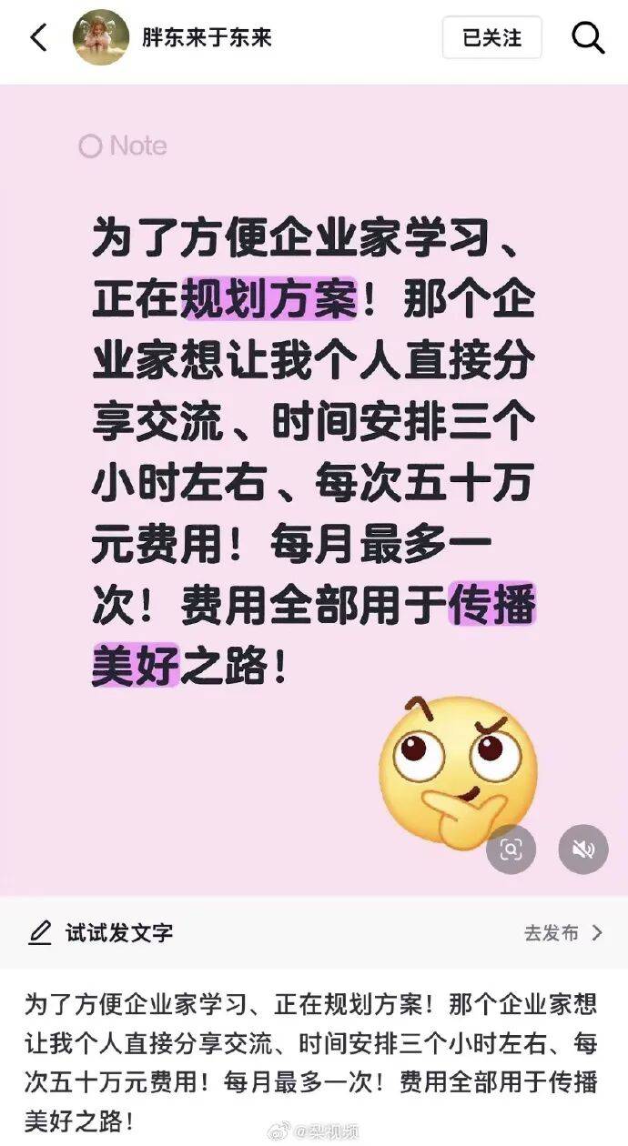 10月21日,于东来发文:"为了方便企业家学习,正在规划方案!哪个企业家想让我个人直接分享交流,时间安排三个小时左右,每次五十万元费 用,每月最多一次!费用全部用于传播美好之路!" 10月20日,胖东来商贸集团微信公号发布消息称,为了让外界更好地了解和学习胖东来,集团设立"胖东来开放日",给大家提供进入企业内部参 观的渠道。 胖东来商贸集团称,胖东来的价值是传播先进的文化理念、生活理念和科学的管理方法,通过企业的样板,让更多人懂得如何健康科学地做企 业,如何轻松幸福的生活。 | 开放日时间 | 参访范围 参访人数 | 预约方式 | 收费标准 | | --- | --- | --- | --- | | 毎月10日、20日 | 每批次≤15人 产业园+天使城+时代广场 同一企业最多 | 通过系统预约 并填报信息 | 20000元/人 | | | 预约5人 | | | | 1.开放日如遇周二,往后顺延一日; | | | | | 2.每年每个企业每人安排参访一次。 | | | | 实施细则显示,开放时间自2025年11月1日起,每月10日、20日,开放对象为企业级学习参观。参访范围为"产业园+天使城+时代广场",申请 ...