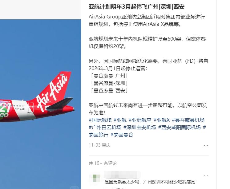 公司战略调整 - 亚航集团完成业务整合,将东南亚五国子公司统一纳入麾下,原长途品牌亚航X退出历史舞台 [6] - 公司进行机队战略转型,全面退役A330宽体机并取消剩余订单,未来完全依托空客A320系列窄体机构建点对点全球窄体机网络 [9] - 亚航集团CEO力推的超级App战略已被搁置,拆分航空业务、聚焦主业成为明确方向 [9] 航线运营数据与盈利压力 - 泰国亚航今年上半年销售及服务收入为230.45亿泰铢,同比下降9% [16] - 公司上半年运送1040万名旅客,平均客座率为84%,低于业内普遍认为低成本航司实现盈利的80%关键临界点 [16] - 2025年夏季中国大陆至泰国航线座位数仅为410万,较2024年同期的510万减少100万个,较2019年同期下滑44% [13] 市场需求变化 - 今年暑运中国赴泰航班量恢复率仅53.8%,而日本航线恢复率已超100% [12] - 中国仍是泰国最大国际客源市场,但中国游客出行偏好转移导致相关航线收益承压 [13] 行业竞争态势 - 东南亚三分之二的国际区域航班由廉航运营,全球范围为1/3,价格战进入白热化阶段 [17] - 泰国国际航空计划将广州、北京航线频次翻倍至每周14班,并新增武汉、深圳等航点 [18] - 春秋航空将广州至曼谷航线频次从每周7班加密至10班,凭借本土化优势抢占客源 [18] - 波音公司预测未来20年东南亚航空客运量年均增速将达7.2%,超过全球平均水平 [18] 行业发展趋势 - 2014年至2023年,全球低成本航空的区域内航线市场份额从30.3%提升至31.8% [19] - 同期亚太地区低成本航空的国内航线市场份额从25.7%攀升至28.3% [19] - 东南亚航空市场呈现客运量增长但盈利下滑特征,行业集中度持续走高,并购重组与航线优化成为核心路径 [19]
