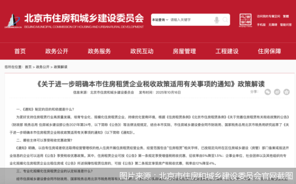北京继续给住房租赁企业减负,税收优惠新政明年1月1日起实施