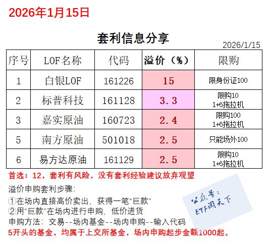 白银市场热度与投资工具 - 白银市场处于牛市,现货价格突破91美元/盎司创历史新高,伦敦金站上4600美元形成助攻 [3] - 白银价格异动引发资本市场高度关注,国投白银LOF在21天内价格翻倍,溢价率一度飙升至60% [3] - 对于普通投资者而言,直接交易白银期货门槛高,实物白银流动性弱,白银LOF(上市型开放式基金)提供了更灵活便捷的参与方式 [3] 白银LOF产品现状 - 市场存在多只商品类LOF产品,其中白银LOF(代码161226)溢价率高达15%,并实施限购(限身份证100) [2] - 其他高关注度商品LOF包括标普科技(溢价3.3%)、嘉实原油(溢价2.4%)、南方原油(溢价2.5%)和易方达原油(溢价2.5%),均设有不同形式的限购措施 [2] LOF套利策略与市场关注 - 白银LOF不仅是投资白银资产的工具,其溢价与折价机制为专业投资者提供了套利机会,部分投资者通过套利获得丰厚收益 [3] - 套利操作也存在风险,例如T+2交易机制和溢价收敛风险,有投资者因追高而被套 [3] - 市场对白银及LOF套利话题需求高涨,相关历史文章总计约239篇,其中2025年9月、10月、12月是发文高峰期,涉及白银LOF套利的文章分别为16篇、17篇和29篇 [6] 白银投资的多维度分析 - 白银投资的价值不仅在于价格涨跌,还涉及LOF套利策略、资产配置逻辑以及白银自身的供需基本面等多重因素 [3] - 有汇总资料将白银LOF套利从基础逻辑、实操技巧到风险规避和行情解读进行了系统梳理,旨在帮助投资者理解白银投资的底层逻辑 [6]