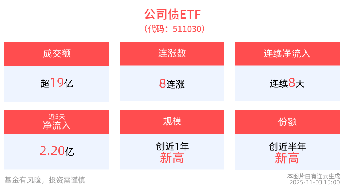 收益新“债”见,公司债ETF(511030)实现8连涨