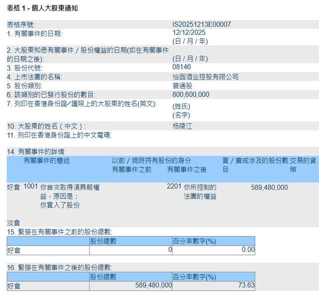 来源:环球网 【环球网消费综合报道】12月15日,港交所披露的一则权益变动信息引爆了酒业资本市场。国内酒类新 零售巨头壹玖壹玖的创始人杨陵江,以个人身份正式入主港股上市公司怡园酒业(08146.HK),以 73.63%的持股比例成为其控股股东和实际控制人。此举被市场广泛解读为,壹玖壹玖在阔别资本市场 一年多后,正通过"借壳"方式重启其资本化进程。 作为中国酒类新零售的标志性人物,杨陵江此次出手并非空穴来风。自2023年年中从新三板退市以来, 关于壹玖壹玖将重启IPO的传闻便不绝于耳。杨陵江近期也公开回应,公司将在合法合规的前提下,尽 早推进资本化进程。此次控股一家港股上市公司,无疑为其资本蓝图提供了关键的想象空间。 中国酒业独立评论人肖竹青在接受环球网消费记者采访时谈道:"杨陵江是资本高手,曾带领壹玖壹玖 完成多轮融资。因此,其不可能只是简单收购一个酒庄,后续一定有更大的资本动作。" 42.5%,但净利润仍亏损274.5万元。 在肖竹青看来,怡园酒业虽然业绩承压,但拥有优质的实体酒庄资产,且净资产为正,具备显著的资产 整合价值。他进一步解读了杨陵江选择怡园酒业的三大原因:首先,怡园作为国内首家上市的精品酒 庄 ...