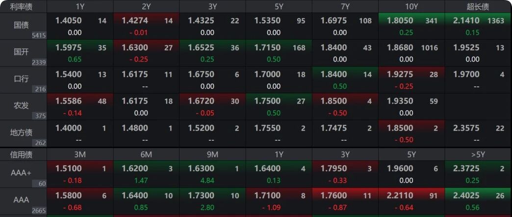 资金面与货币政策 - 央行公开市场净回笼4919亿元 开展340亿元7天期逆回购操作同时有5259亿元逆回购到期 [2] - 银行间资金价格回落 DR001降至1.31% DR007降至1.42% 呈现均衡宽松状态 [3] - 隔夜回购(R001)成交量达78006亿元占总量90.55% 加权利率下降1bp至1.36% [4] 债券市场动态 - 30Y国债成交活跃度显著提升 达1300+笔 超越10Y国开债和10Y国债(1000+笔)成为市场焦点 [6] - 10Y国债利率全天窄幅震荡 开盘1.64% 振幅仅0.5bp 最终微涨0.15bp至1.6410% [5][6] - 超长端债券获投资者最高关注度 问卷调查显示超长端取代短端和长端成为最被看好的品种 [6] 股债联动效应 - 股市冲高回落 盘中涨幅超1% 银行股创历史新高 对债市形成阶段性压力 [4][5] - 监管调研传闻未显著影响债市 中短债基购买超长国债的调研消息未改变利率震荡格局 [4][5][6] 国际政治经济关联 - 特朗普"大漂亮"法案通过 马斯克威胁组建"美国党"获40%投票者支持 可能影响全球资本流动 [6]