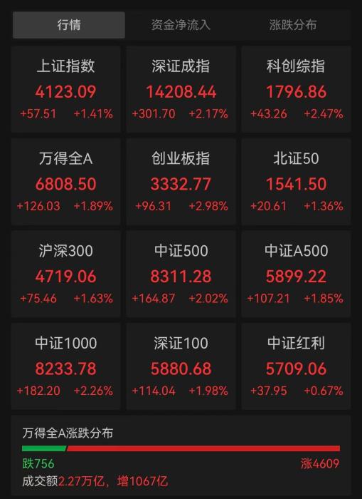 A股三大股指集体收涨 创业板指涨近3%