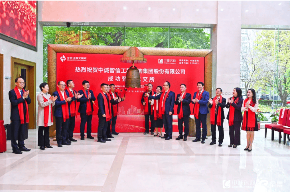 发行概况: 公司股票简称:中诚咨询,代码:920003 本次发行价格为14.27元/股,发行数量为1400万股,募集资金总额近2亿元,将用于工程咨询服务网络建 设、研发及信息化建设项目。 11月7日上午,苏州市高新区企业中诚智信工程咨询集团股份有限公司在北京证券交易所敲钟上市,开盘 涨幅超190%。至此,苏州市高新区今年已上市企业2家,累计上市企业38家,资本市场"高新军团"持续壮 大。 中诚智信工程咨询集团股份有限公司 中诚咨询成立于2002年,深耕工程咨询领域,聚焦全产业链数字化转型,着力打造综合一体化全过程专业 咨询平台,是全国文明单位、国家高新技术企业。公司主营业务包括工程监理、项目管理、造价咨询、 BIM建筑信息化应用、建筑设计等专业技术服务及全过程工程咨询服务,目前以江苏为市场战略核心,持 续向全国范围深度辐射,已拓展至越南、泰国、沙特等国家和地区。 中诚智信工程咨询集团股份有限公司董事长陆俊,区党工委副书记、区政府区长吴琦,市委金融工委副书 记王群宇,市住建局副局长陈实,区领导李志军、杨亮,相关机构、企业代表出席活动。 近年来,高新区深入实施企业上市培育"领峰计划""金心护企"行动计划,将服务企 ...